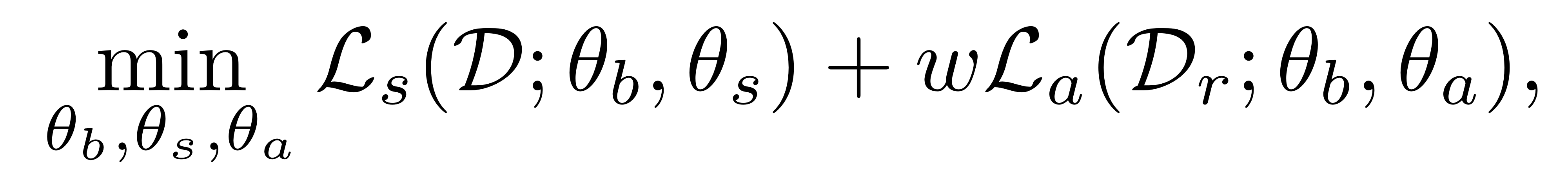 {theta}_{b} : backbone f의 가중치, {theta}_{s} : supervised head의 가중치, {theta}_{a} : auxiliary head의 가중치