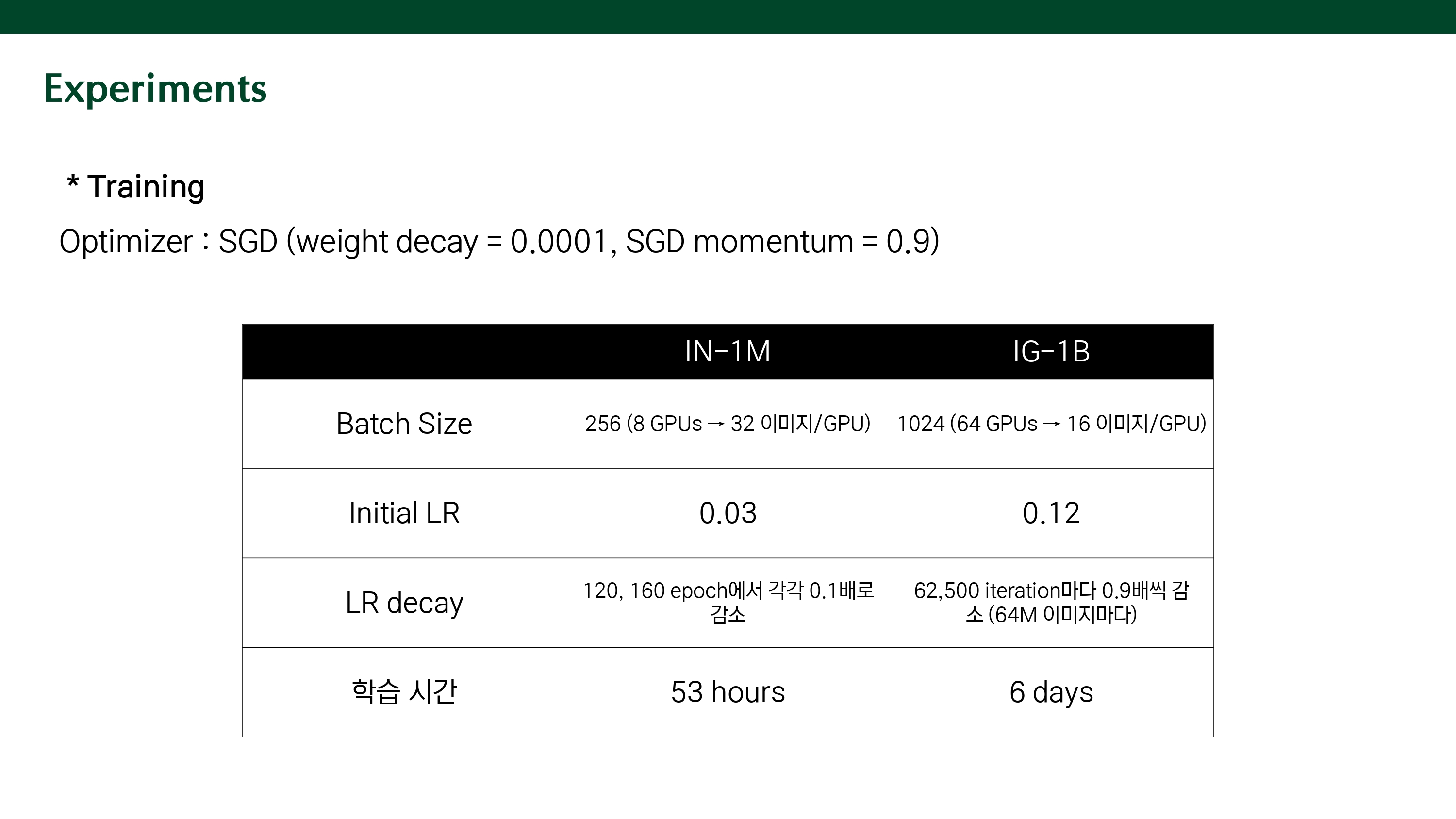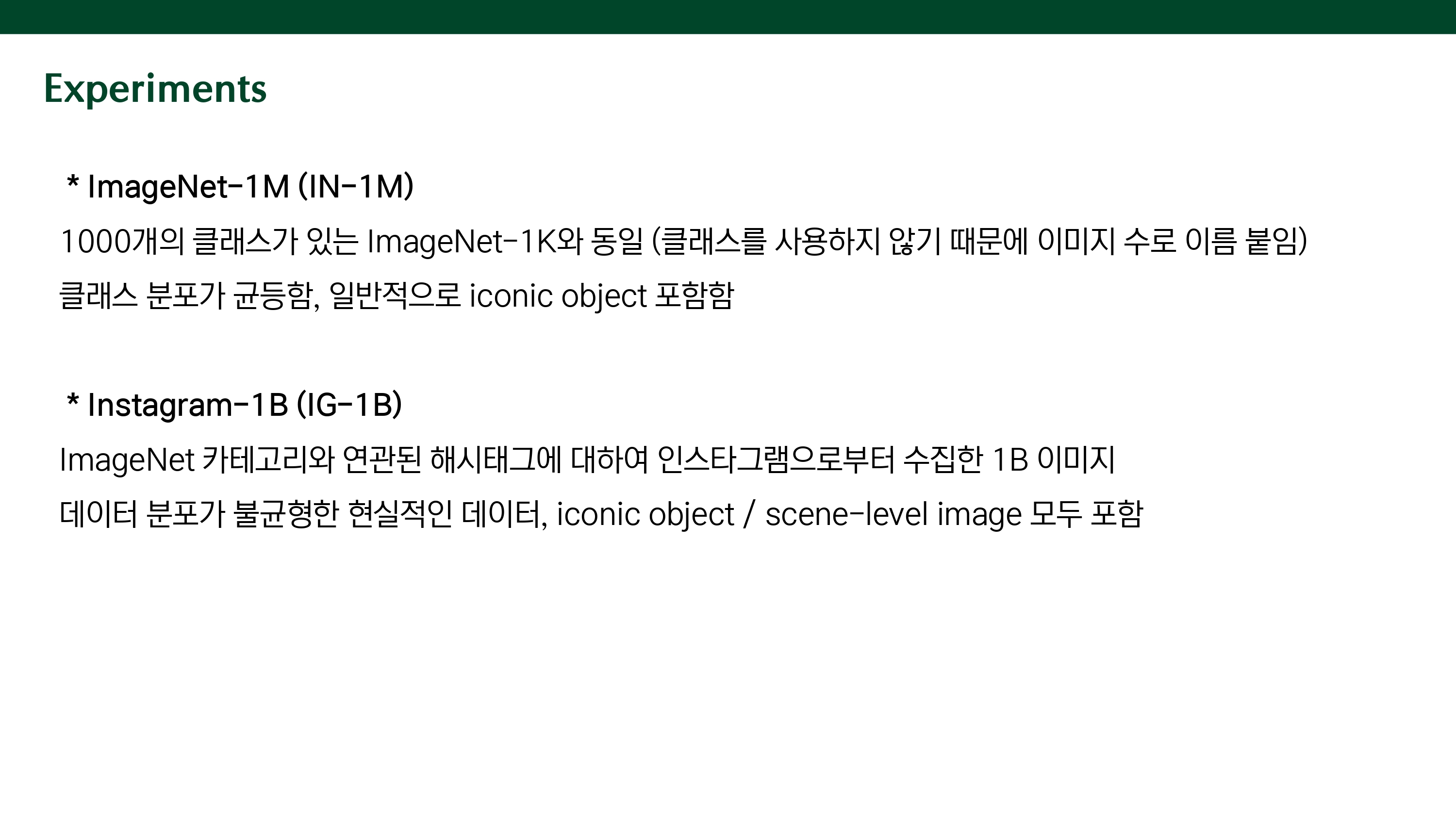 ImageNet 카테고리와 연관된 해시태그에 대하여 인스타그램으로부터 수집한 1B 이미지 데이터