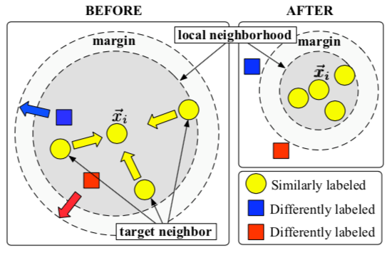 Contrastive loss는 representation space에서 샘플 쌍의 유사도를 측정한다. 두 샘플 간의 유사도를 기반으로 비슷한 것(positive pair)은 가까워지도록, 다른 것(negative pair)은 멀어지도록 학습하는 손실 함수이다. 인풋을 고정된 타겟과 매칭하는 것이 아닌, 타겟이 학습 중에 계속 바뀔 수 있고, 네트워크에 의해 계산된 data representation으로 정의될 수 있다. 그래서, Contrastive learning은 비지도 학습 연구의 핵심이라고 할 수 있다. (비지도 학습에서는 고정된 레이블이 없으므로)