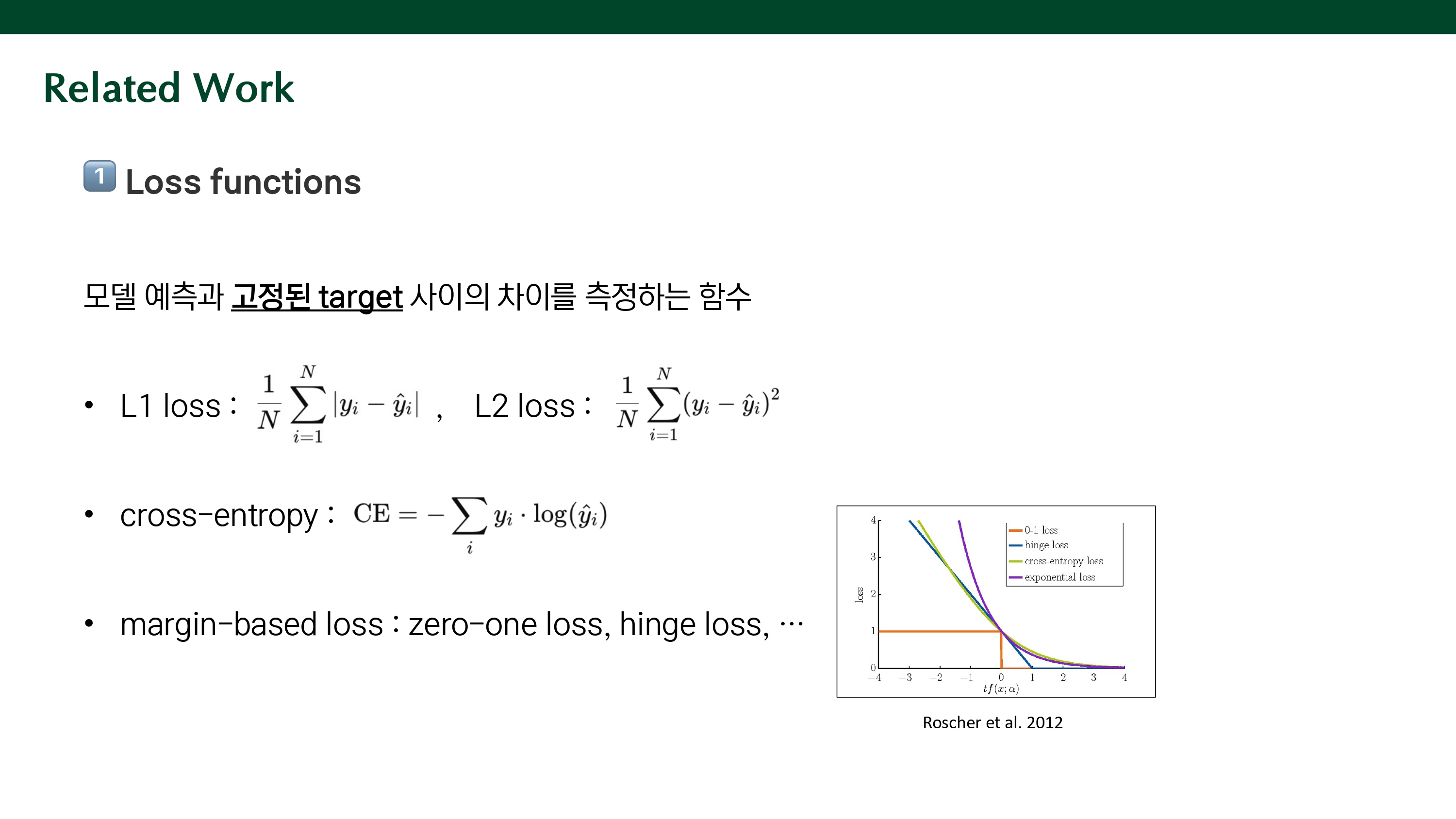 손실 함수의 일반적인 정의는 모델의 예측과 고정된 타겟 사이의 차이를 측정하는 것이다.