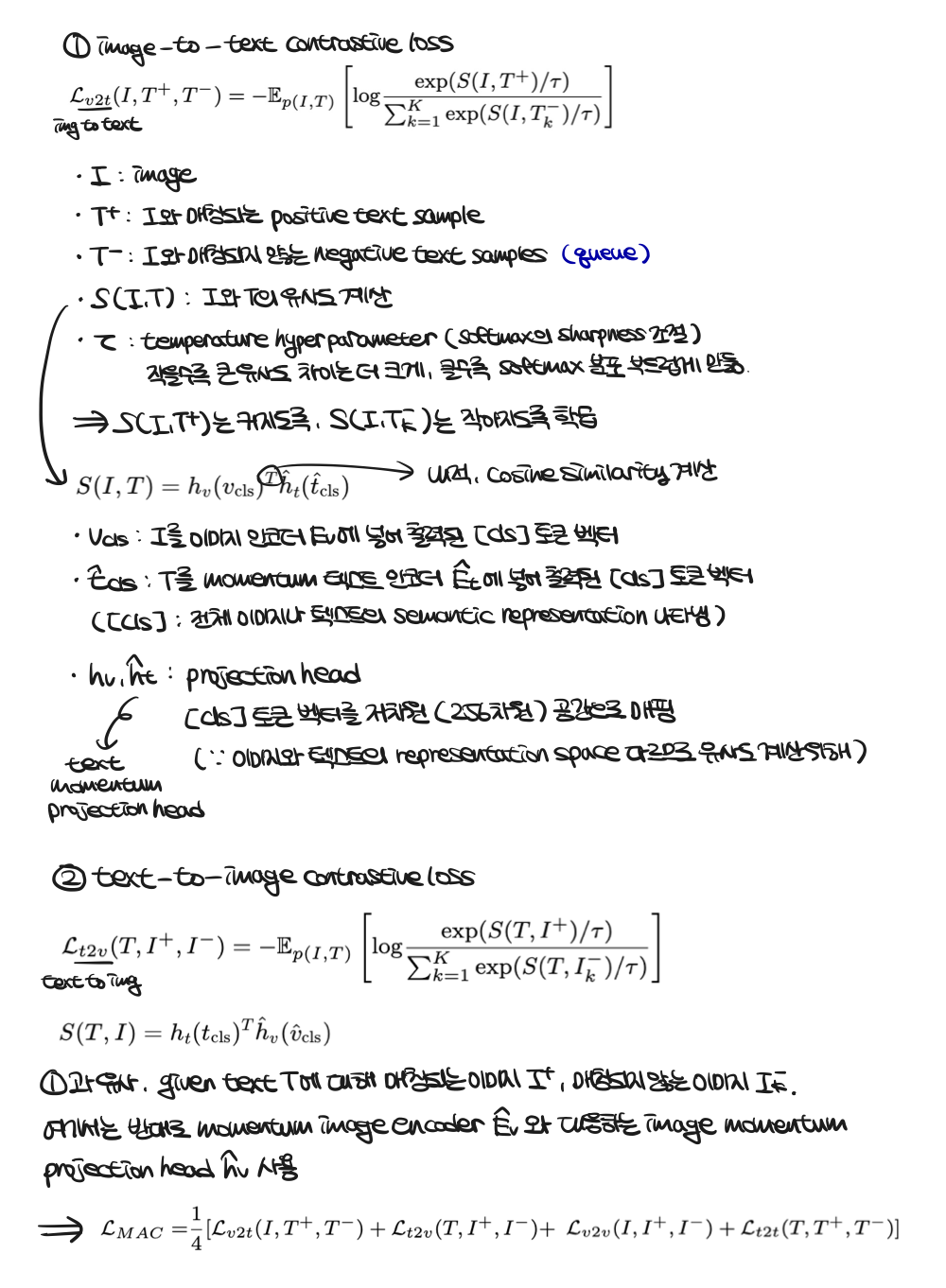 MoCo에서 영감받아, 두 모달리티에 대해 momentum uni-modal encoder 학습, 대응되는 momentum projection head 존재