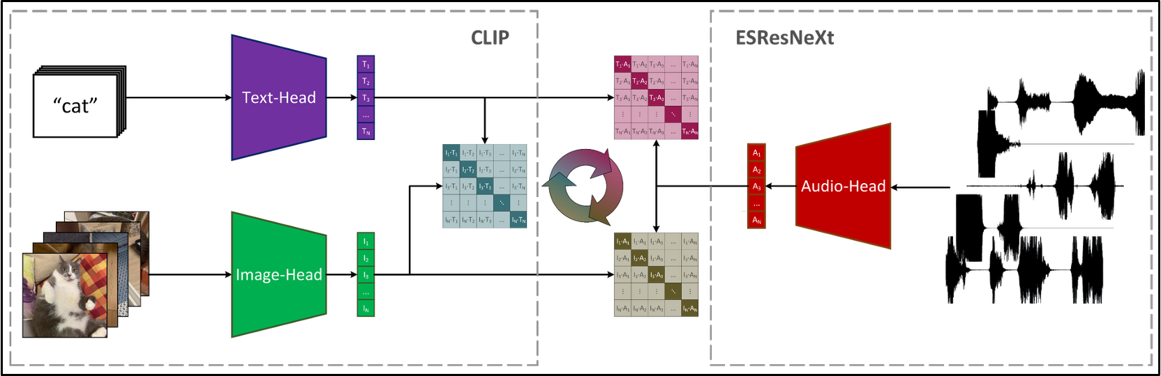 그 예시로, AudioCLIP은 기존 CLIP framework에 오디오를 추가적인 모달리티로 사용한 것인데, 기존 CLIP이 이미지-텍스트 쌍만 학습하였다면, AudioCLIP은 추가적으로 이미지-오디오 쌍, 텍스트-오디오 쌍을 학습하여 zero-shot audio classification이 가능해졌다. 모달리티가 하나가 추가됨에 따라 2가지의 데이터 쌍을 추가적으로 학습해야 하는 것이다. 만약, 기존 방식대로 멀티모달 러닝을 수행할 때, 여기서 모달리티가 더 추가된다면 학습해야 하는 데이터 쌍이 훨씬 많아질 것이다.