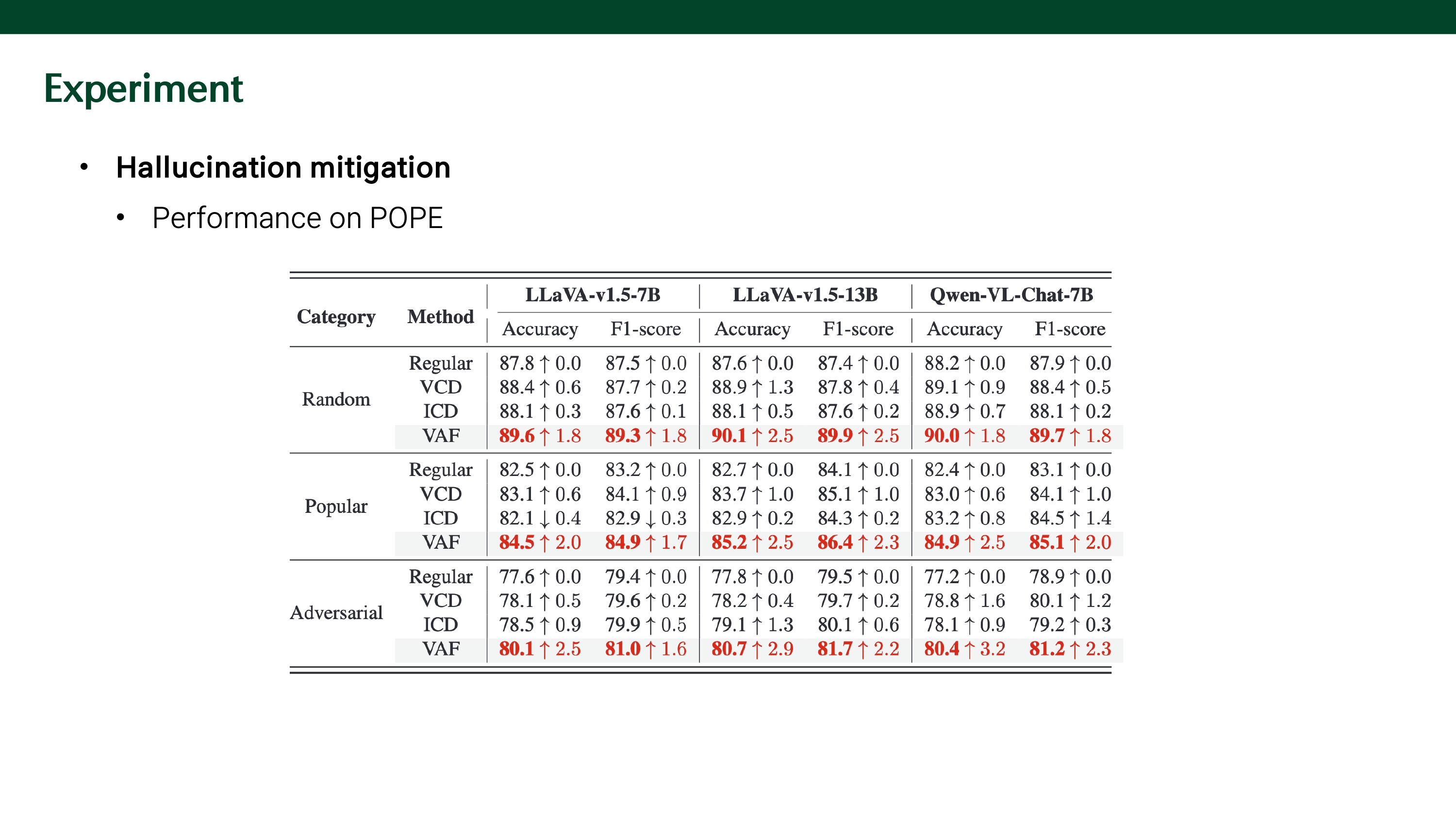 - VAF가 모든 모델에서 VCD, ICD 보다 높은 성능 (hallucinaiton 완화)