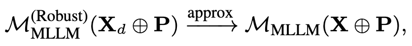 동일한 인풋을 robust MLLM에 넣어 기존 MLLM에 깨끗한 입력을 넣었을 때의 출력과 가까워지도록 최적화하는 것이 목표임