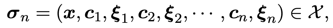 $x = (v,q)$: question-image pair, $c$: clarification question, ξ: user's feedback (yes or no로 제한됨)