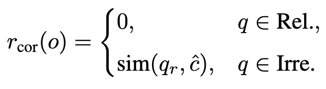 - Query Correction Reward: 관련 없는 쿼리에 대해서는 관련된 쿼리를 만들도록 하여 실제 관련 쿼리와의 유사도를 리워드로 사용해 understanding을 향상시킴